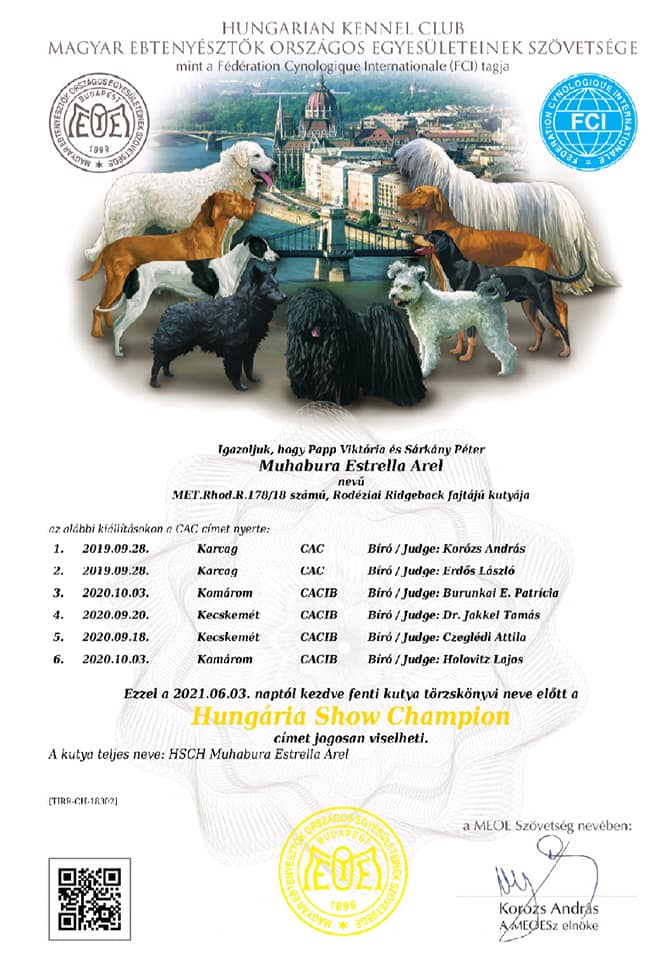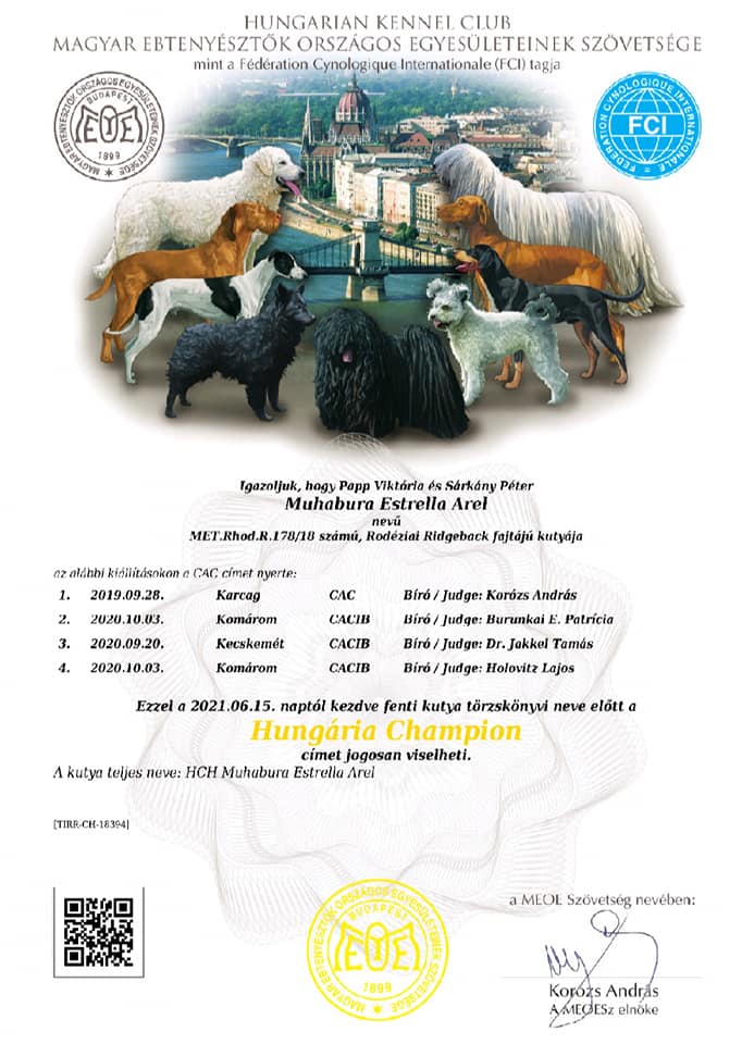 Champion címek megszerzése 2021.06.20. Muhabura Estrella Arel sikeresen megszerezte a Hungarian Champion valamint a Hungarian Show Champion címet. Related Oszd meg mással is, ha tetszett Előző bejegyzésAlomterv változásKövetkező cikk Subotica IDS 20.06.2021 Szólj hozzá...Cancel reply