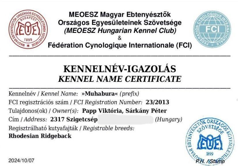 Én két kutyával, Zekkel és Joise-val élek, míg Péternél van a másik három, Arel, Maya és Luna. Közösen tenyésztjük őket a kennelünkben. 2018 óta (abban az évben volt az első almunk közös tenyésztőként).