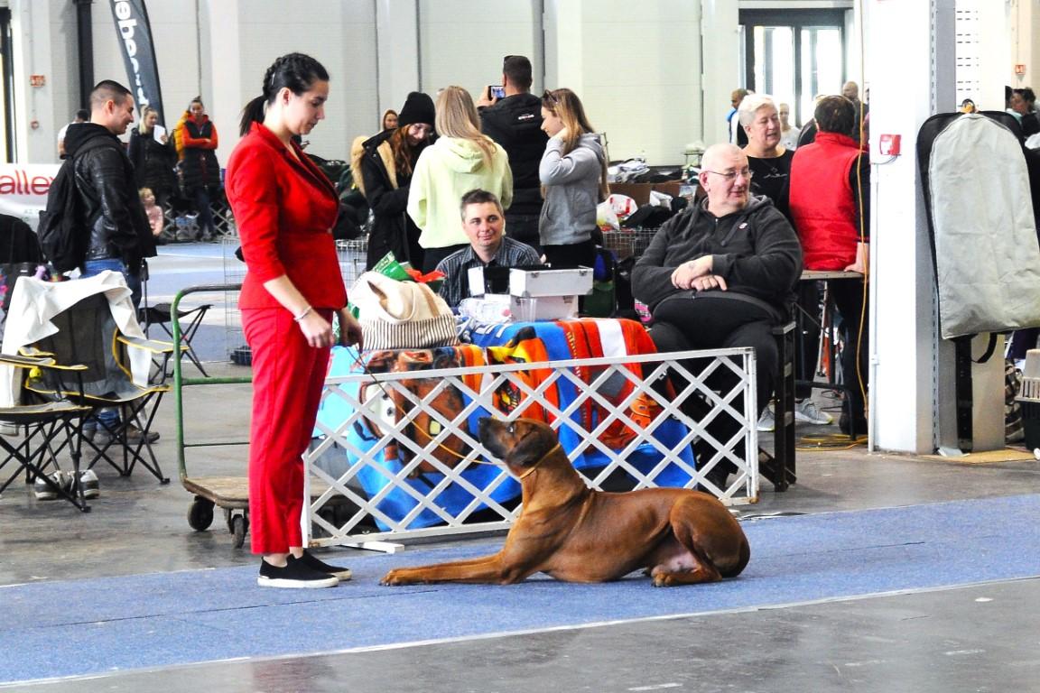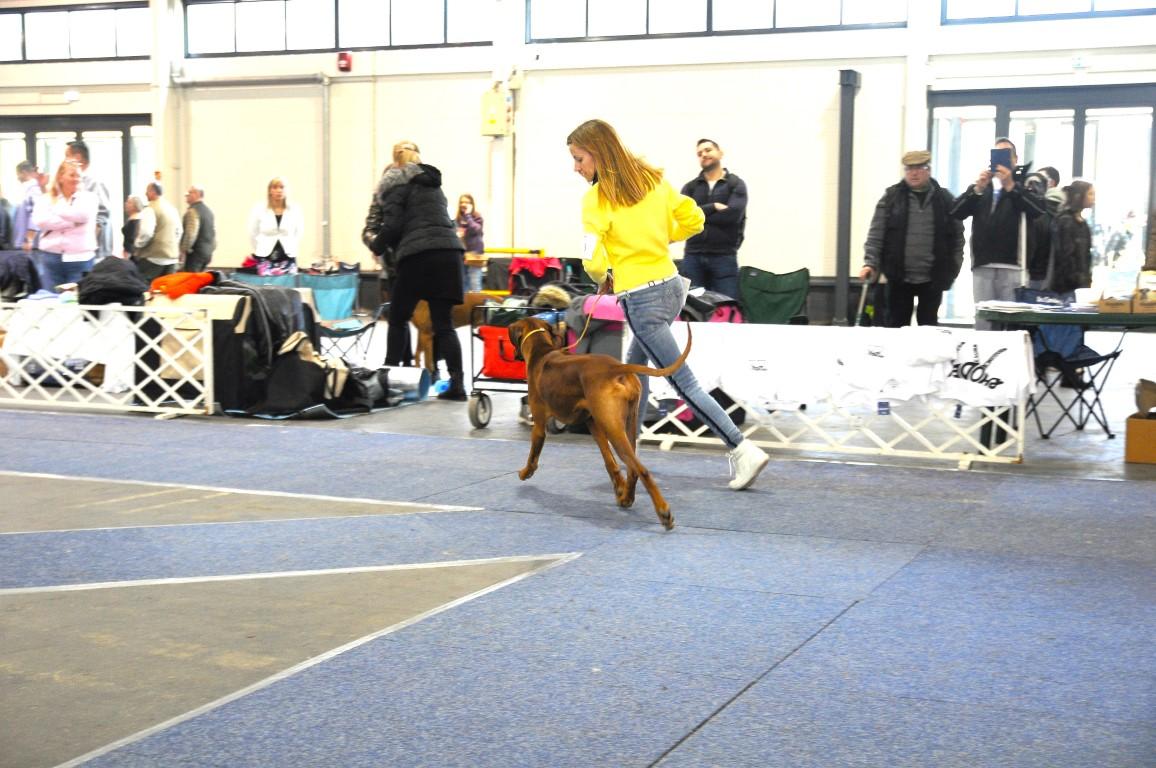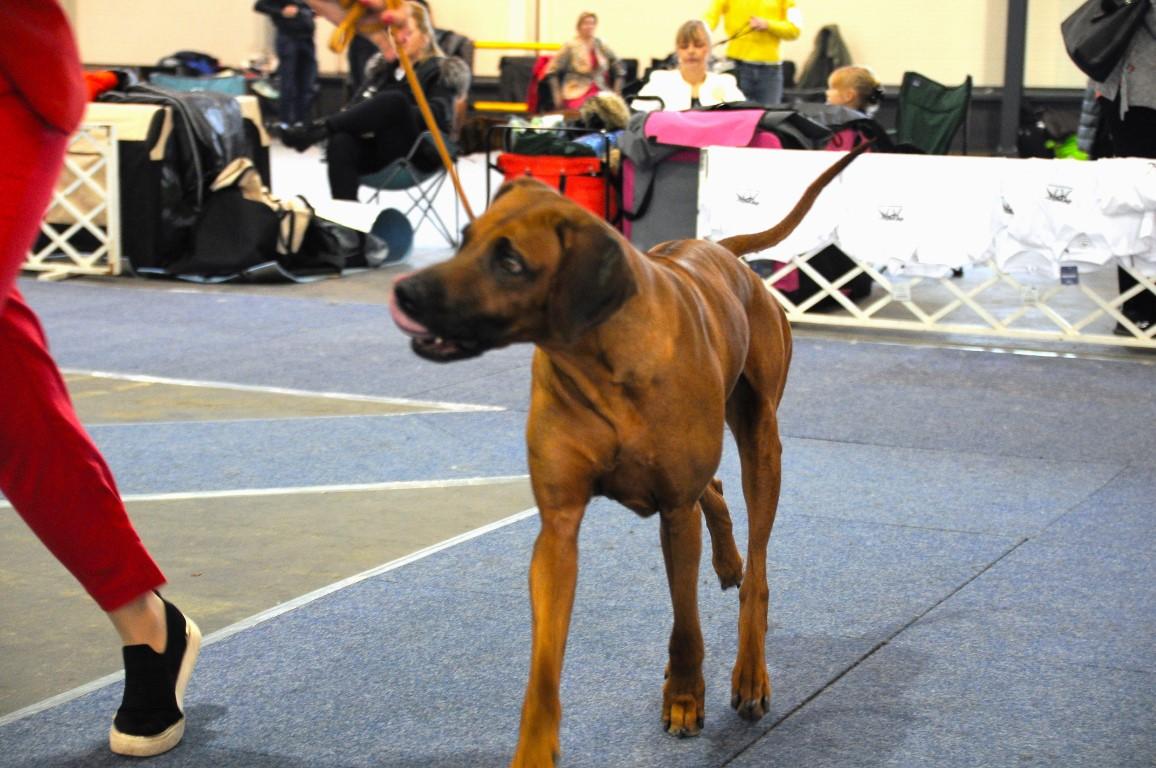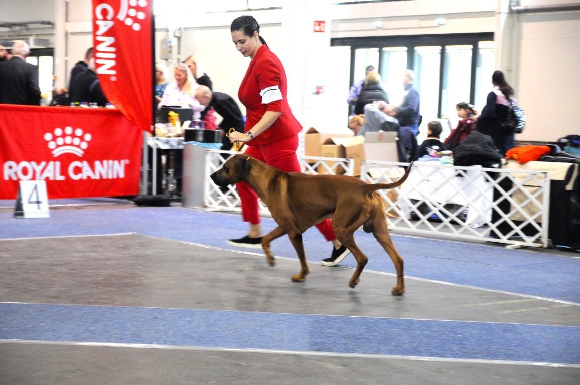 Judgement: 6 years old, correct head, scissors bite, correct teeth, little bit too dark mask, dark eyes, perfect neck, correct topline, correct ridge, standard chest, but not enough frontchest, excelent back movement, little bit short steps on the front, moderate temperament.