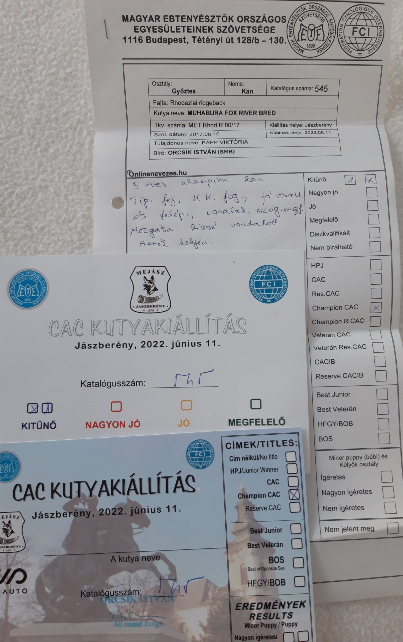 MUHABURA Fox River Bred „ZEK” Champion class: excellent 1. CAC