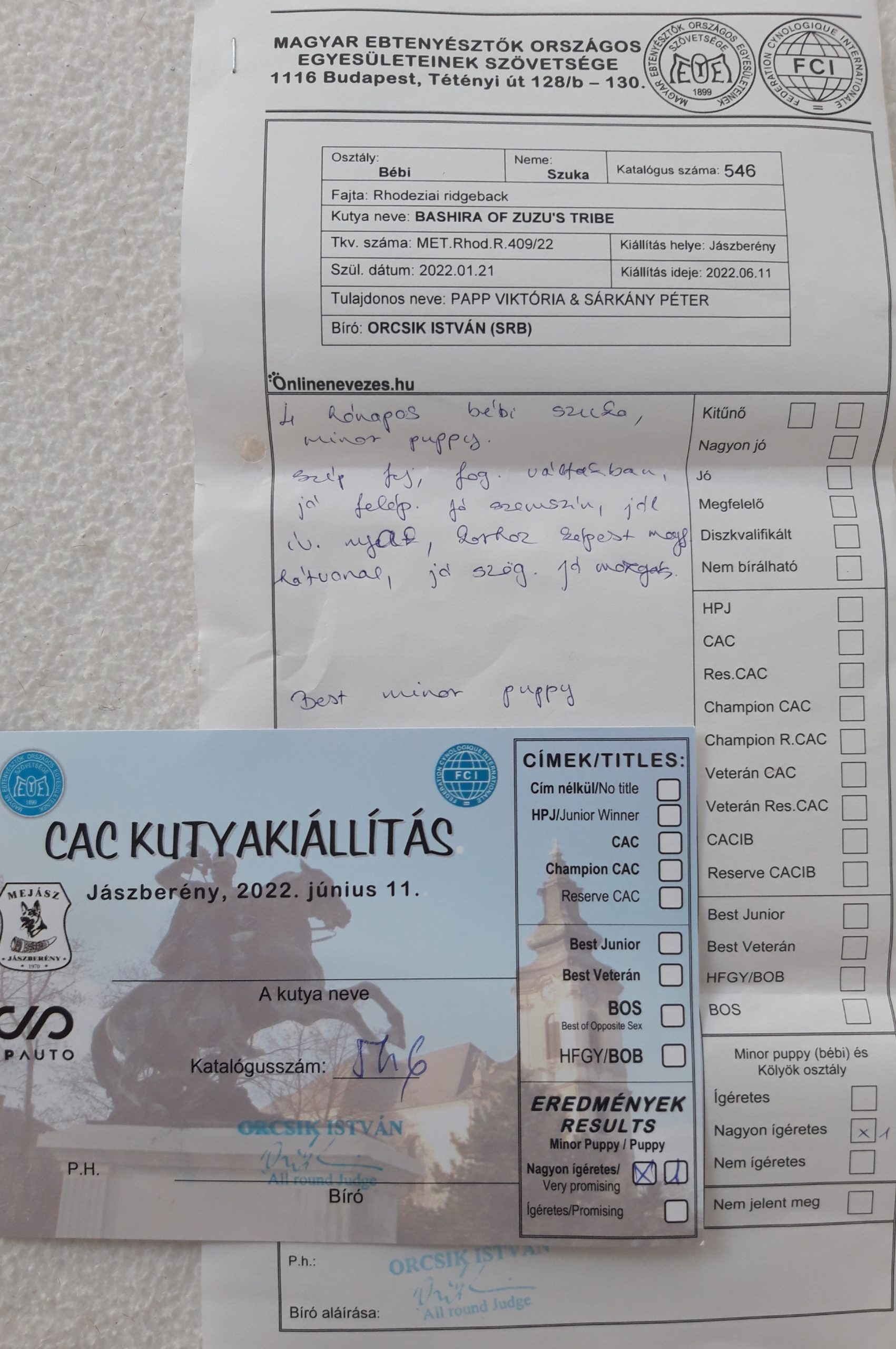 Bashira of Zuzu’s Tribe Very Promising 1. Best minor puppy AND MINOR PUPPY BIS III.