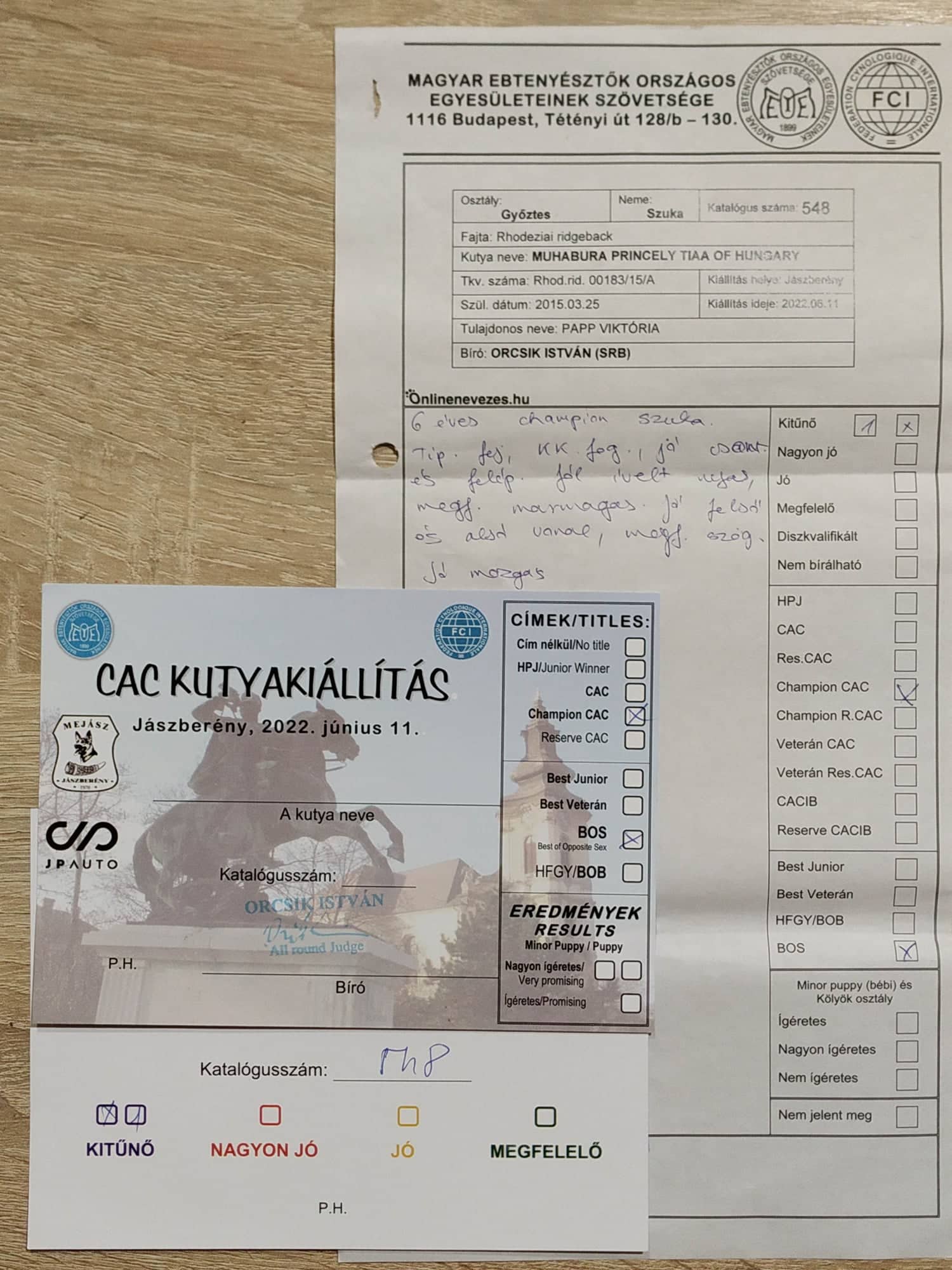 Muhabura Princely Tiaa Of Hungary „Zoé” Champion class: excellent 1. CAC and BOS