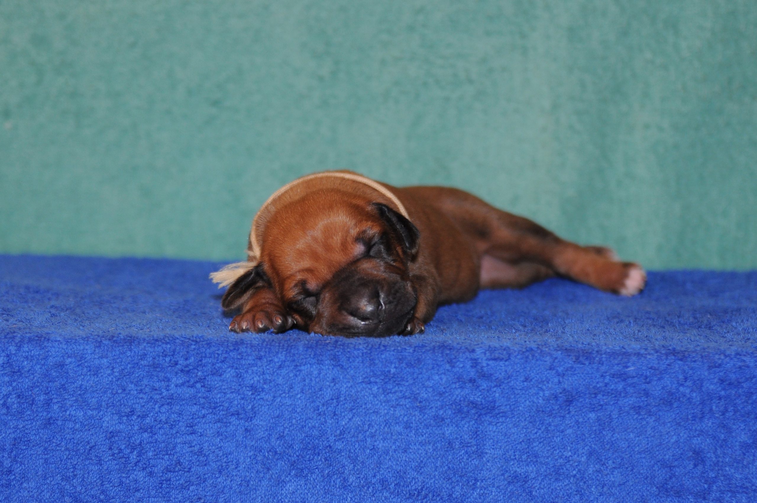 Az egy hetes viziten sem tapintottunk DS-t. Lassan a szemek is kinyílnak. A fejek továbbra is csodaszépek. Rendkívül jól fejlődik a csapat, a kölykök kiegyensúlyozottak. Arel gondoskodó és türelmes anyuka.